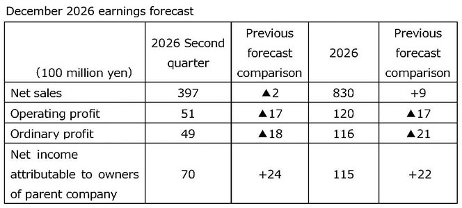 As a result, the Group’s net sales increased by 5.7 billion yen year-on-year to 82.0 billion yen, operating income rose by 1.4 billion yen year-on-year to 13.7 billion yen, ordinary income increased by 1.0 billion yen year-on-year to 13.7 billion yen, and net income attributable to owners of the parent company rose by 0.1 billion yen year-on-year to 9.2 billion yen. Operating income and ordinary income both reached record highs, and net income attributable to owners of the parent also reached a record high.